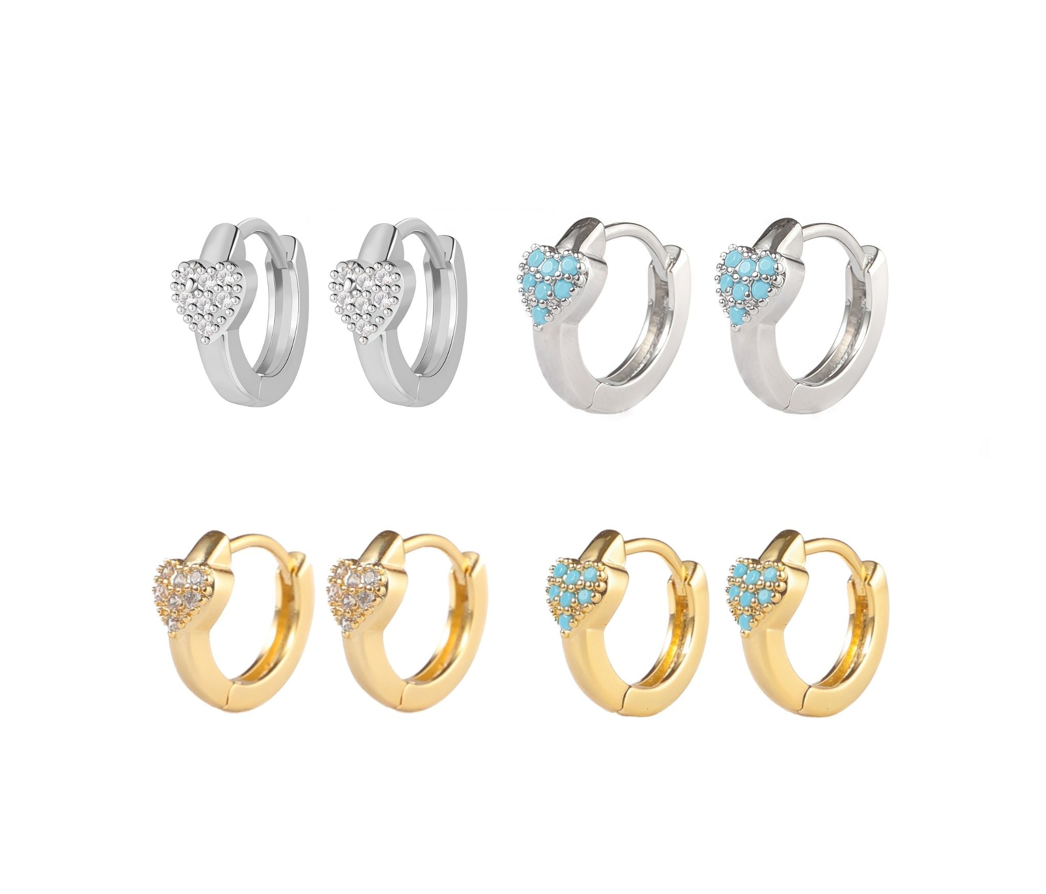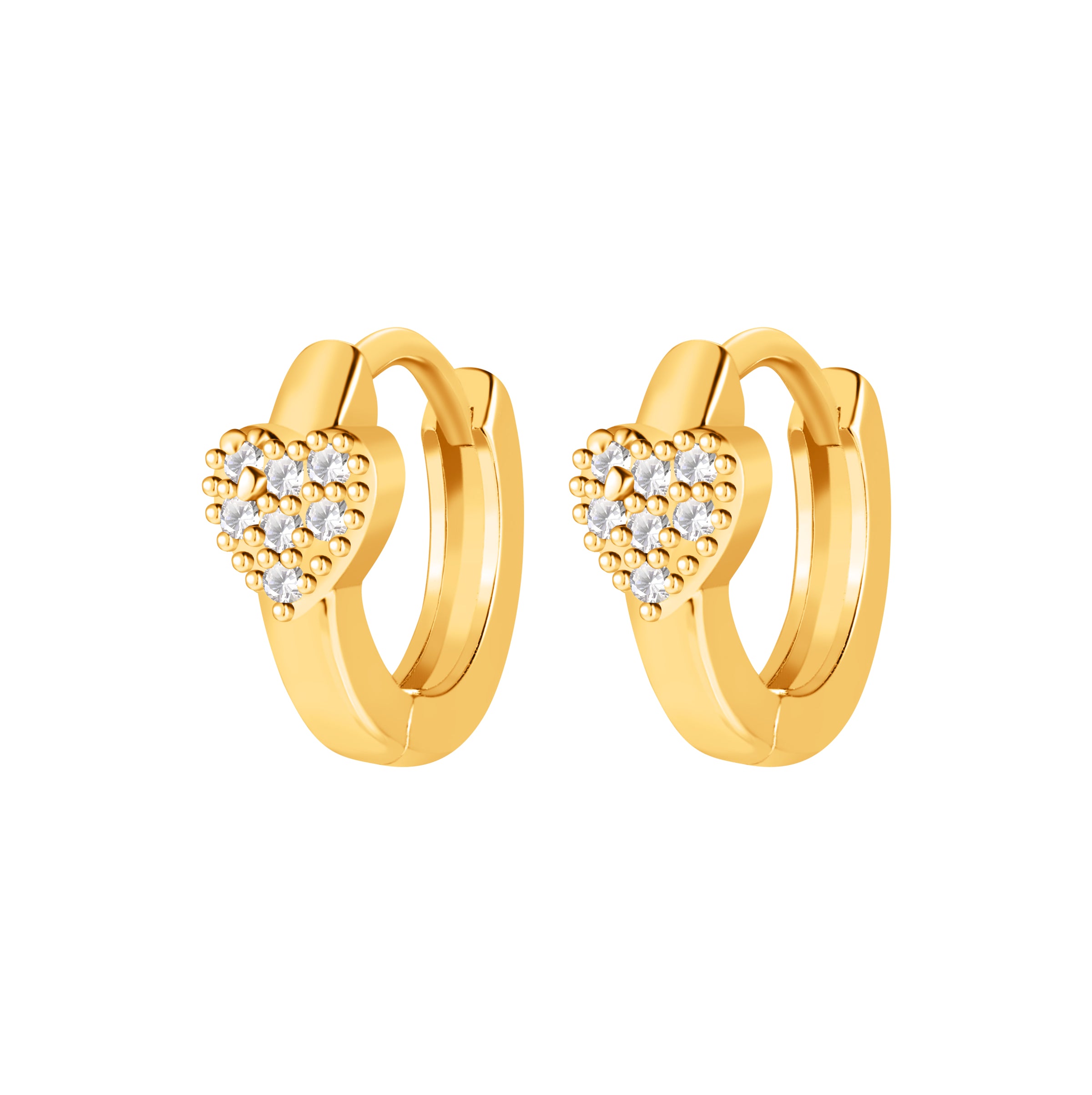 Add a touch of romance and sparkle to your look with this adorable set of gold heart huggie hoop earrings. Each pair features a dainty heart charm encrusted with shimmering cz stones, set on a sleek gold-tone hoop. With a snug, lightweight fit, these earrings are perfect for everyday wear, date nights, or thoughtful gifting. Whether you're gifting someone special or treating yourself, these heart-shaped hoops are a timeless symbol of love and style.